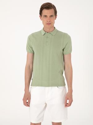 - Açık Haki Slim Fit %100 Pamuk Polo Yaka Triko Tişört