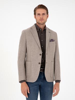 Açık Kahverengi Yün Karışımlı Slim Fit Ceket