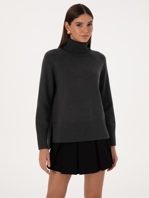 - Antrasit Comfort Fit Yün Karışımlı Balıkçı Yaka Kazak