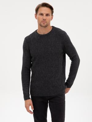- Antrasit Melanj Regular Fit Bisiklet Yaka Triko Kazak
