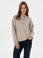 - Bej Comfort Fit Yün Polo Yaka Kazak
