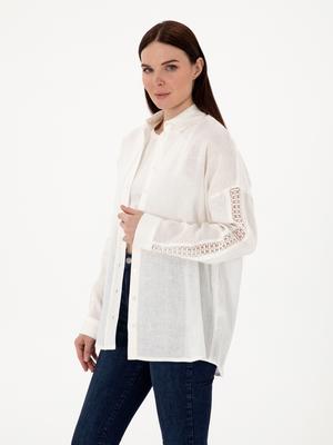 - Beyaz Oversize Uzun Kollu %100 Keten Gömlek