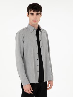 Gri Çizgili Regular Fit Uzun Kollu Gömlek