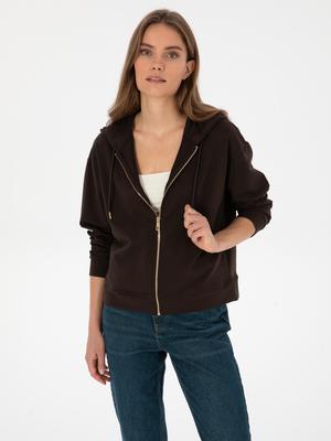 Sezonun trendi kahverengi kadın sweatshirt, tok duruşu ile zarif bir duruş sergiler. oversize kalıbı sayesinde vücuda kolaylıkla uyum sağlar. Gold fermuar ve askı detayları, belden bitişi ile kombinlerinizin tamamlayıcı parçasıdır. kapüşonlu detayı günlük giyimde stilinizi ön plana çıkarır.