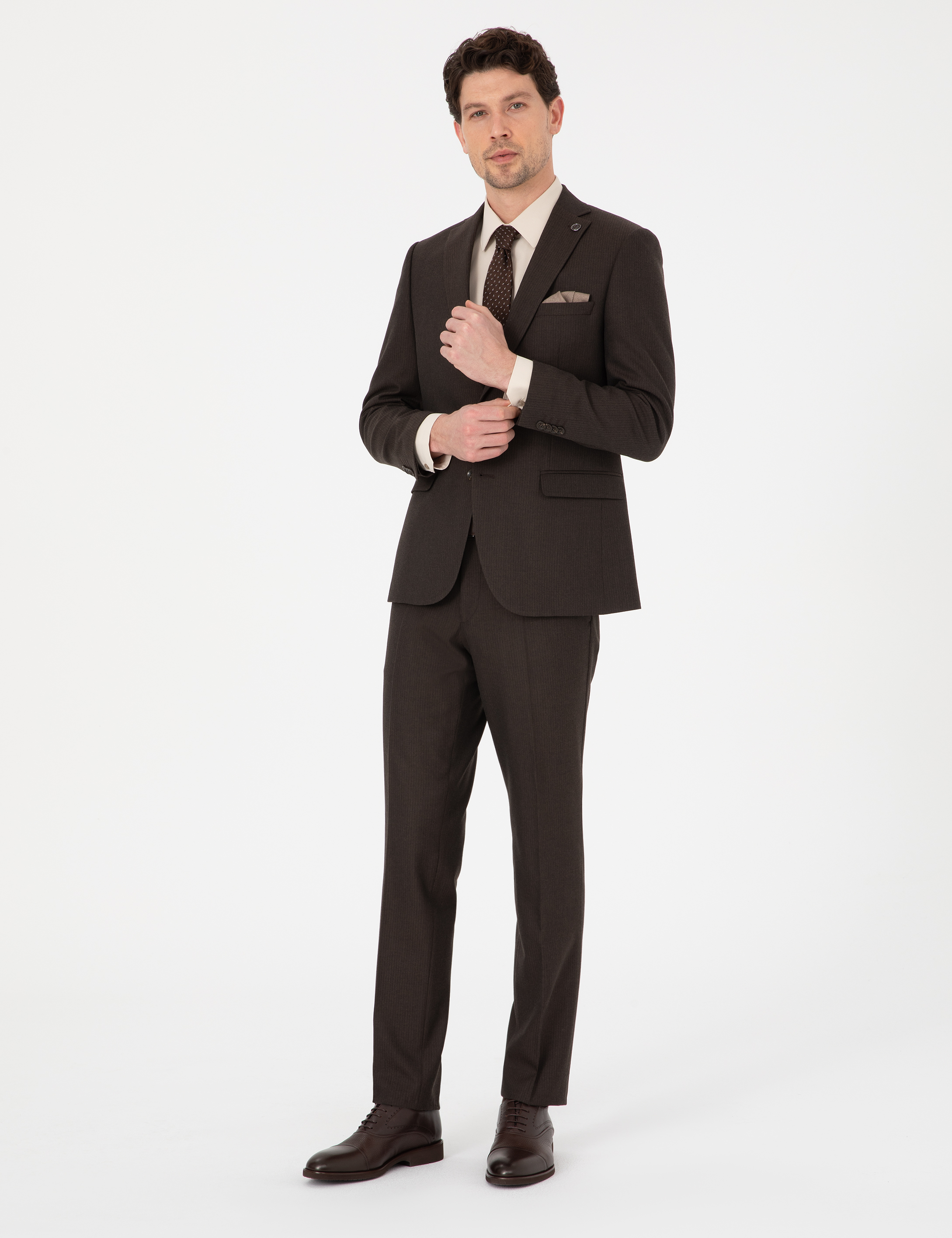 - Kahverengi Slim Fit Takım Elbise