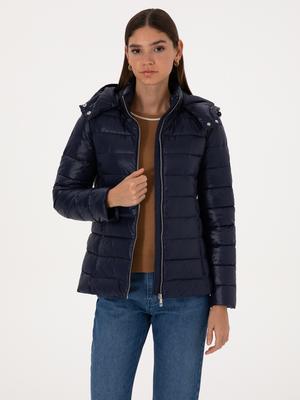 Lacivert Çıkarılabilir Kapüşonlu Mont