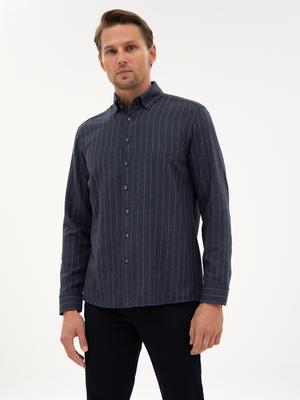 - Lacivert Çizgili Regular Fit Uzun Kollu Gömlek