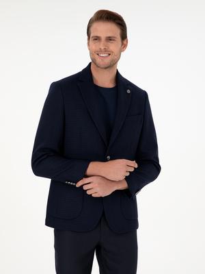 Lacivert Yün Karışımlı Slim Fit Ceket