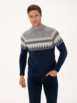 - Lacivert Slim Fit Çeyrek Yaka Triko Kazak