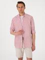 - Nar Çiçeği %100 Keten Çizgili Regular Fit Uzun Kollu Gömlek
